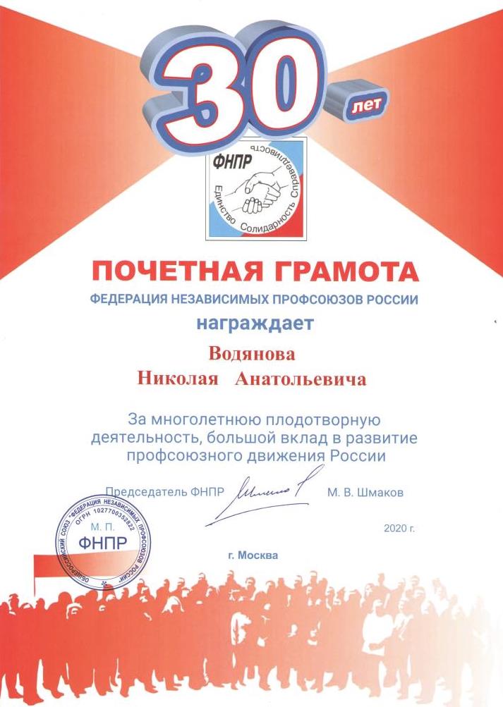 ФНПР вручила первые награды к 30-летию организации
